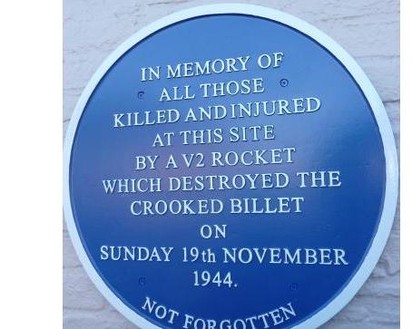 In 1944, London faced an unprecedented and terrifying threat from a completely new weapon - the V2 rocket. Travelling at over 3000 miles per hour, more than four times faster than the speed of sound, no warning of its approach could be given and no defence was possible. Find out what happened when a V2 hit a crowded pub and how all those killed and injured are now commemorated on a blue plaque. This is not just a story from history, it's a story about what one person can do with a great deal of perseverance.